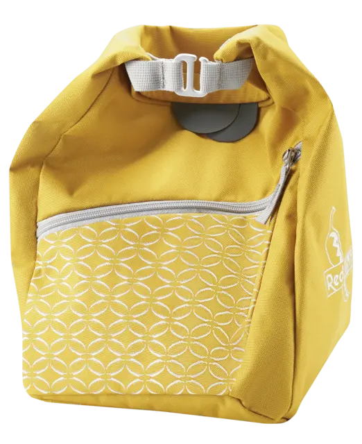Durable chalk bag with a dustproof roll-top closure and fifi hook. Small items can be stowed in the zippered outer pocket, in the lined smartphone pocket, and on the key attachment. The mesh and brush pockets offer additional space for storing all bouldering gear.